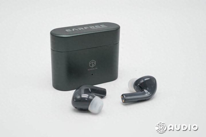 ROSESELSA弱水时砂Earfree i5真无线降噪耳机在外观上兼具时尚与质感,充电盒采用了椭圆柱体设计,正面有logo和指示灯,背面为隐藏式转轴设计,底部设计有产品系列名称,整个充电盒表面为磨砂纹理质感。而耳机则采用入耳式设计,耳柄线条流畅,底部设置有充电触点和麦克风拾音孔,耳机前腔设计圆润,上设有调音孔。